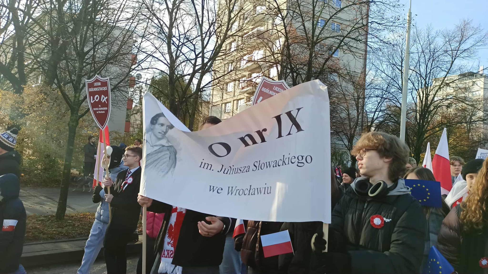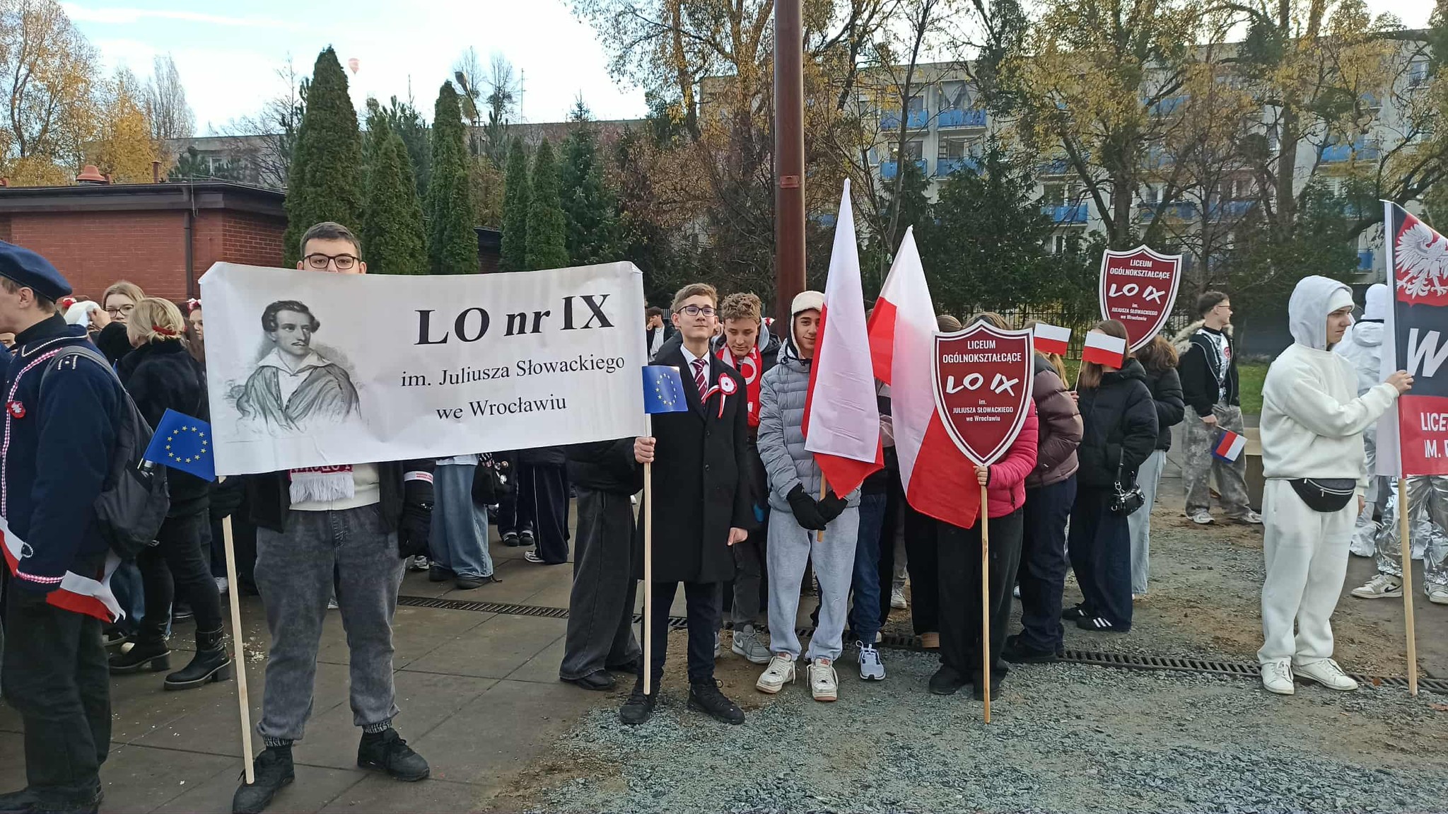 W dniu 11 listopada uczniowie naszej szkoły wraz z prof. Mateuszem Ścisłym uczestniczyli - jak co roku - w Radosnej Paradzie Niepodległości.